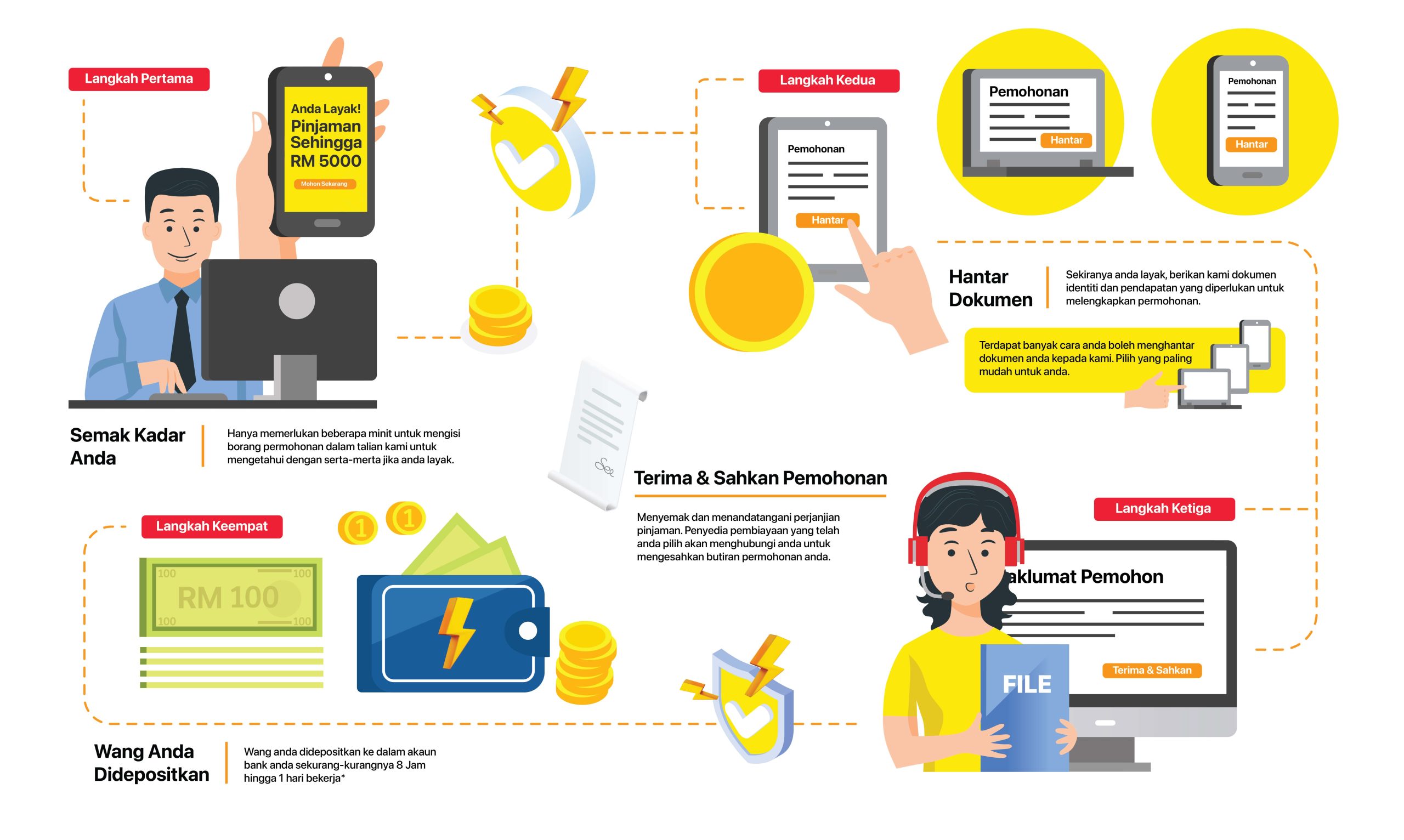 Jika anda ingin memohon pinjaman loan peribadi Kredit Rakyat, sila ikuti empat langkah mudah di bawah: